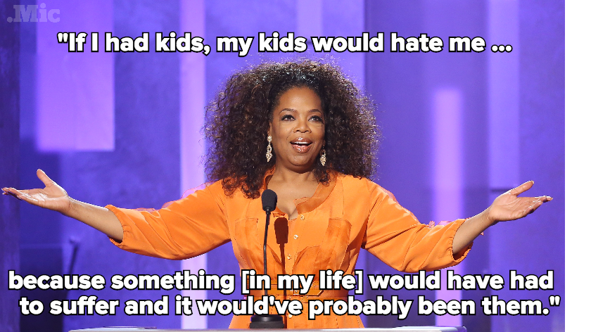 - Oprah Winfrey: “Nëse do të kisha fëmijë, ata do të më urrenin… sepse diçka [në jetën time] do të duhej të vuante dhe mendoj se do të ishin pikërisht ata që do të vuanin.”