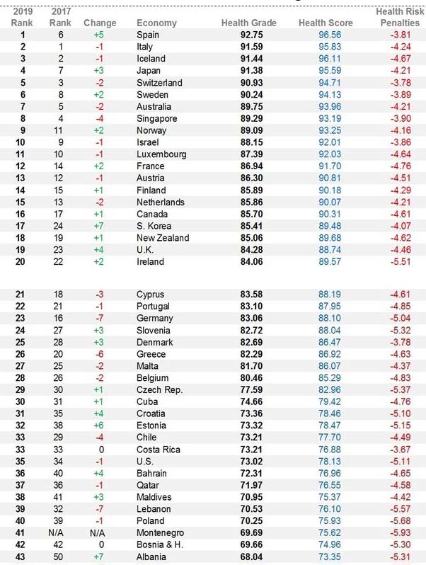 Ndryshe nga Shqipëria, vendet e tjera të Ballkanit kanë bërë përpara në drejtim të përmirësimit të shëndetit konsumator. Serbia vijon të ngjitet në renditje, duke zënë vendin e 18-të si rrjedhojë e përmirësimit të situatës me kohën e pritjes dhe për shkak të investimeve, ndërsa Mali i Zi ka shënuar përmirësim për shkak të uljes së normës së vdekshmërisë foshnjore, duke u ngjitur në vendin e 23-të.