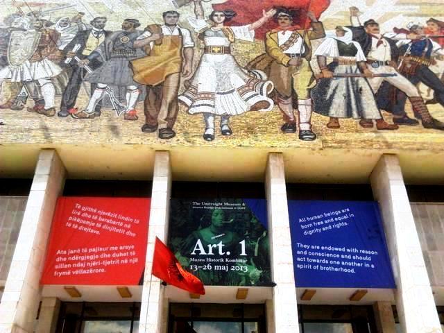 Nen mozaikun e Muzeut Kombetar posterat e ekspozites LGBT. Na u mbushen syte me lot kur u vendosen. Kete vit mesazhi eshte me i forte se kurre: Ne jemi LGBT dhe i perkasim historise dhe se ardhmes se ketij vendi. Xheni Karaj