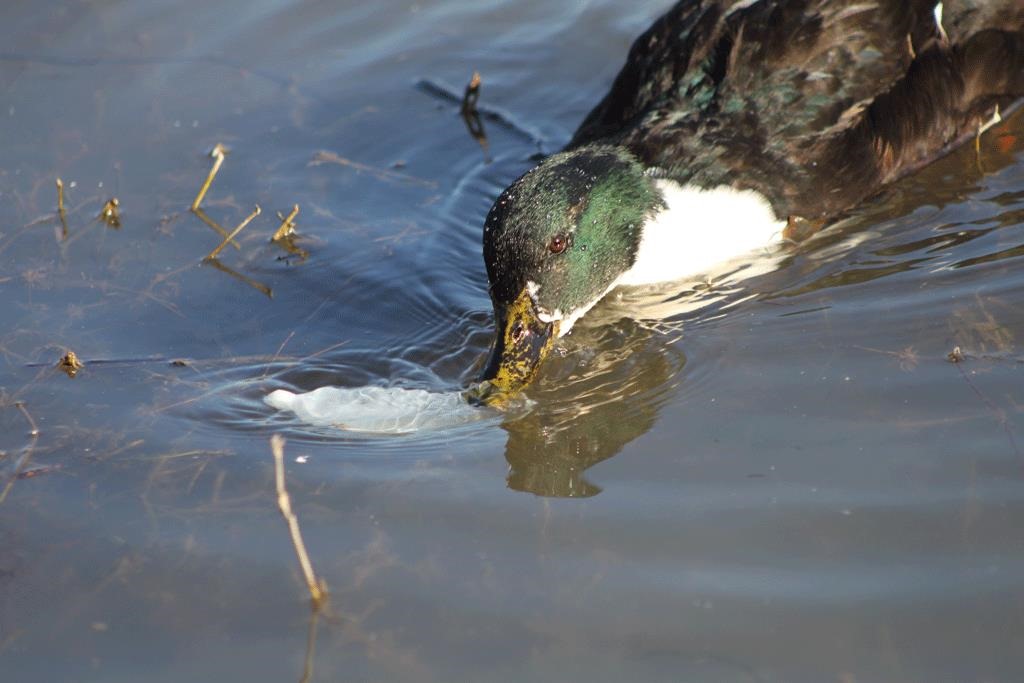 Liqeni pakëz i ngrirë dhe i ftohtë i kopshtit psikiatrik ishte shtëpia e dhjetëra patave, mjellmave, e një pelikani që ia mbathi për t’u kthyer përsëri dhe e shumë shpendëve që endeshin këtej andej duke larë e pastruar veten. Një rosë ushqehej me këmbëngulje me mbeturinat e hedhura në liqen, mbase prej vizitorëve të papërgjegjshëm, ku mes ushqimeve që provoi qe dhe një kondom i përdorur, i hedhur haptazi në liqen.